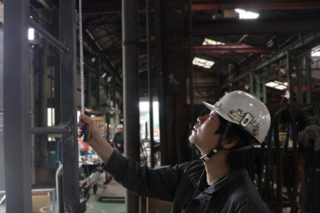 溶接不良を出さないために技術の向上や丁寧な下処理を行い、綺麗な溶接が出来た時にやりがいを感じる。今後は溶接技術を突き詰めて先輩のような技術者になりたいと語る。