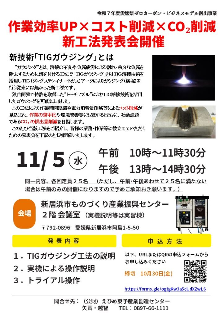 問い合せ:(公財)えひめ東予産業創造センター 越智、矢葺