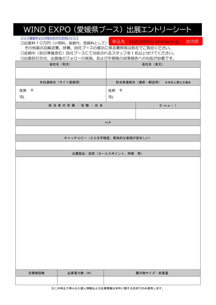 応募方法:↘WINDEXPO愛媛県(こちらからエントリーシートをダウンロードしてください)