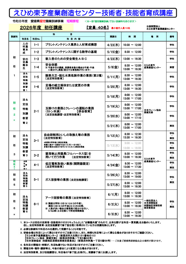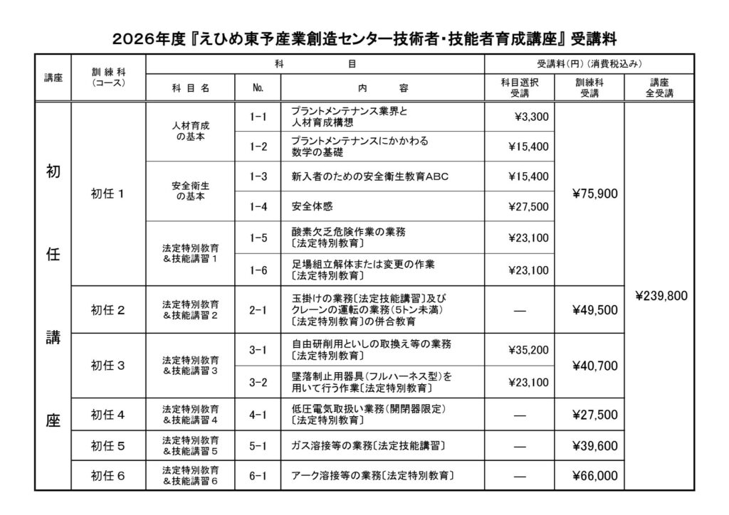 2026プラントメンテナンス初任講座