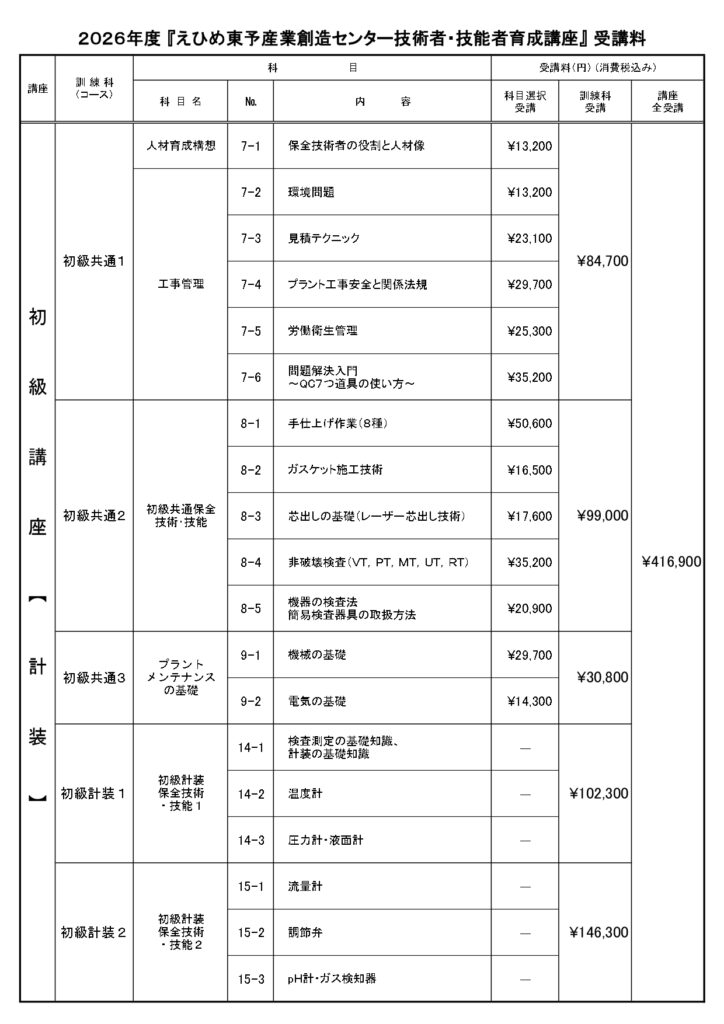 2026プラントメンテナンス初級計装