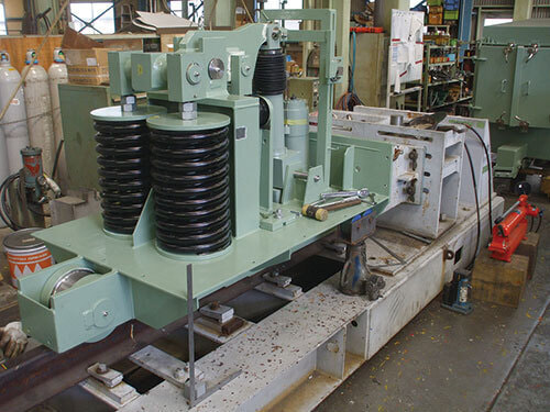 昨今、クレーンの走行装置に関連するレールクランプに注目が集まっている。レールクランプは自動車のパーキングブレーキのようなもので、レールをつかんでクレーンを安全に固定する装置。同社製品は連続アンローダー(CUL)などにも採用されている。クレーンが大きくなれば大きな把握力が必要だが、把握力を求めると保持部のストロークが短くなる。一方で短いストロークでは可動域が狭まり、微調整が難しくなる。「数ミリ違うだけでレールをつかまなくなってしまう」。そこで同社は部品の配置を最適化し、ツメの保持力を高めるなど工夫を凝らして高い要求をクリアしている。11年に発生した東日本大震災では多くのクレーンが津波に流された。レールクランプは必ず必要とされるものではなかったが、この経験を踏まえ、後付け需要が増えている。同社は国内すべてのレールに種類や形状、方式を問わず対応しており、オーバーホールやメンテナンスにも同社が強みとする一貫製造体制で応じる。