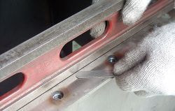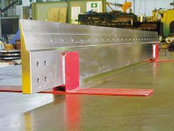 同社のモノづくりの基本理念は「納期・品質・コストダウンを追求し、お客さまの要求に応えていく」(萩尾孝一社長)ことで、それを目指して日常的に作業改善活動を推進している。同社が製造する気密タンクの特徴に『加工レス面』というものがある。職人が叩いて溶接時の歪みを取り、0.3㎜以下の平面精度を出すもので、機械加工工程を減らすことで大幅なコストダウンにつながるという。また、タンクの気密性を保持するための高い溶接技術も同社のセールスポイントだ。材料を平滑化に寄与する2mを超えるドクターブレードホルダーは、機械にセットした際に水平になるように自重によるたわみを考慮した「逆歪取り」の職人技が使われている。