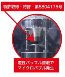 現在、力を注ぐ気液二相流旋回型マイクロバブル発生装置「Z-Baburer」は2015年に発売した。装置内部で渦を作り、真空状態で発生する負圧により吐出口の円盤(遊性バッフル)を回転。旋回流によるせん断と遊性バッフルによる物理的な刺激で大量のマイクロバブルを生み出す。