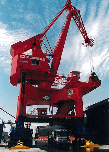 同社では大型クレーンの設計から製造、据え付けまでを手がけるが、中でも港湾荷役用の移動式タイヤクレーンは、同社が初めて製品化した。従来の港湾荷役用クレーンは、あらかじめ設置されているレール上を移動することしかできなかったが、タイヤクレーンは任意の場所に自由に移動できることが特徴。荷役作業が好きな場所でできるため、作業効率が画期的に向上することから、国内はもとより海外でも数多く活躍している。