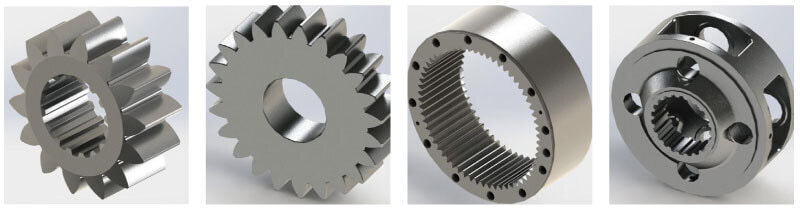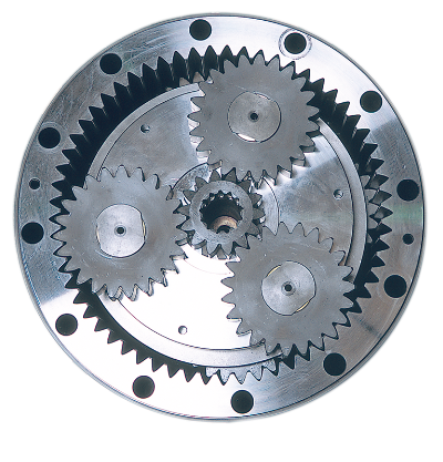 同社が主に手がけるのは、パワーショベル向けの減速機。減速機とは、歯車などで動力の回転速度を減少させてトルクを上げるための装置で、複数の歯車の組み合わせで構成されている。パワーショベルの旋回部分と走行部分に用いられており、少ない段数で大きな減速比を得ることができるので、大きなトルクを伝達できることが特徴だ。同社では、歯車の設計から製作・組み立てまでを一貫して行う体制を構築。設備も建機向けに特化したものを揃え、大量ロットの発注にも対応できることも同社の強みだ。
