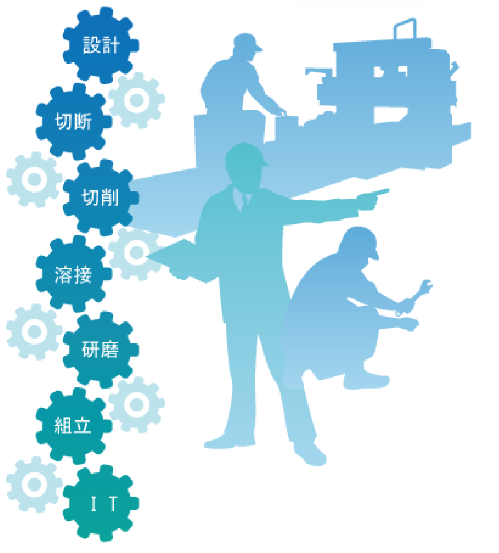 新居浜市内企業の各自が持つ技術を企業間を超えて組み合わせ、設計から製品の完成まで総合的なものづくりを実現します。